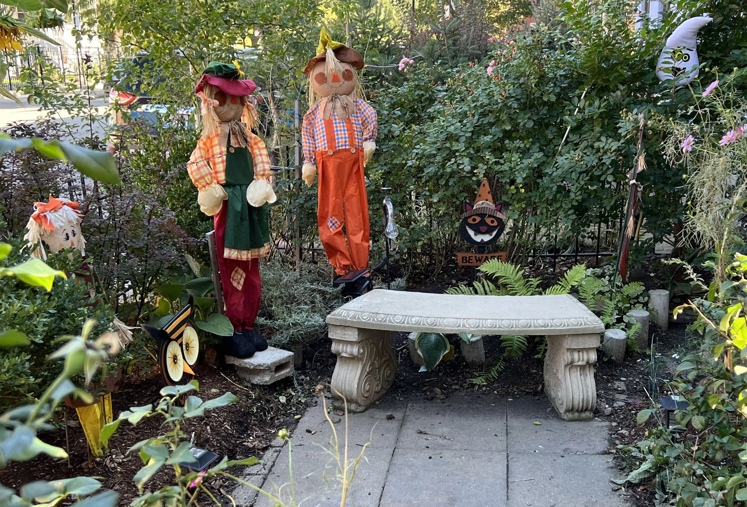 My favorite decorations were the friendly ones, especially the straw-stuffed scarecrows. If I were giving out awards, my top prize would have gone to the business which had about 25 feet of decorations along the planting strip to the side of the business, which happened to be located on a corner, which allowed lots of room to decorate.